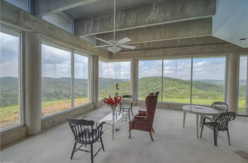 Well you don't see this everyday. If it wasn't for those 8' windows this 3,700 square foot concrete home in the middle of 40 acres just might be the perfect zombie apocalypse getaway. I do love the brutalist industrial material pallet though and the way it is built into the mountain. I'd love to see some better interior shots...